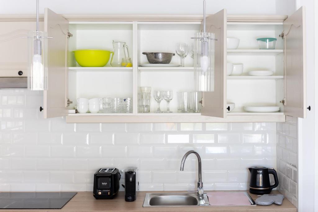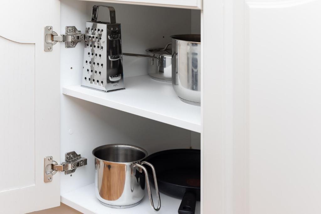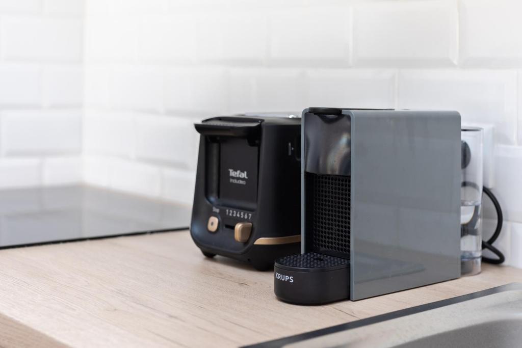 Indukční varná deska, horkovzdušná trouba s funkcí Pizza, rychlovarná konvice, mikrovlnná trouba, topinkovač, kávovar NESSPRESO , překapávač kávy a kompletní vybavení, nové nádobí, příbory, skleničky, pizza plech atd.